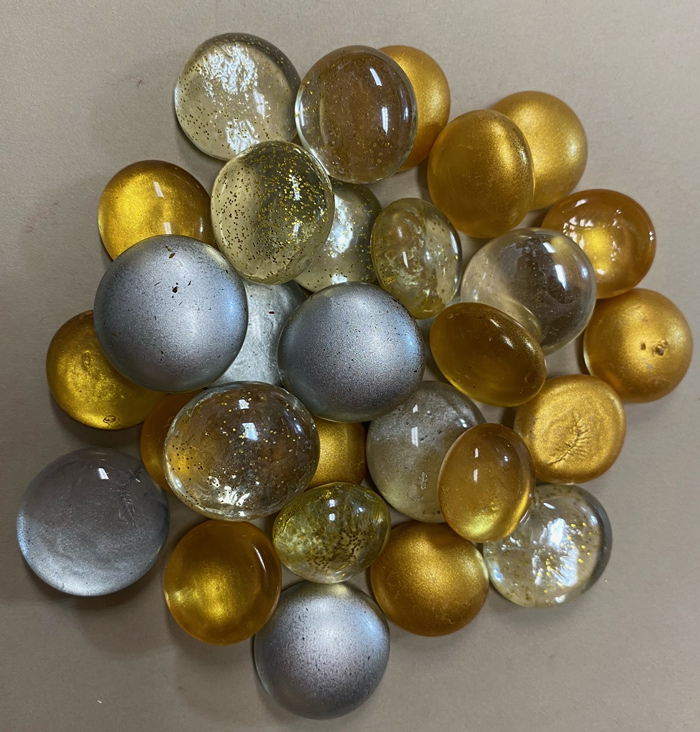 Color: Mixture of Silver/Gold Nuggets in different shades of Opals and Transparents (painted - not recommended to be used with flux)